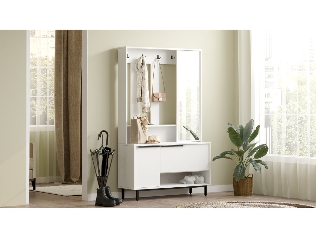 Predsieňová stena so zrkadlom LONNY 11, biela