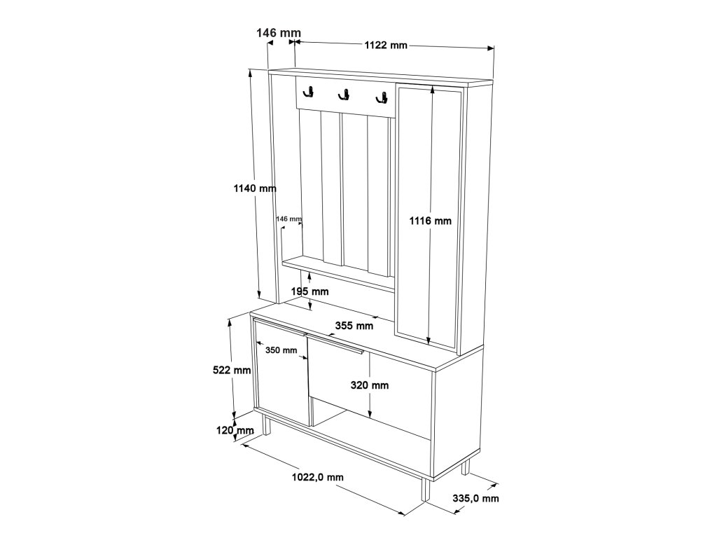 | Zostava obsahuje: | vešiaková stena so zrkadlom, botník |
