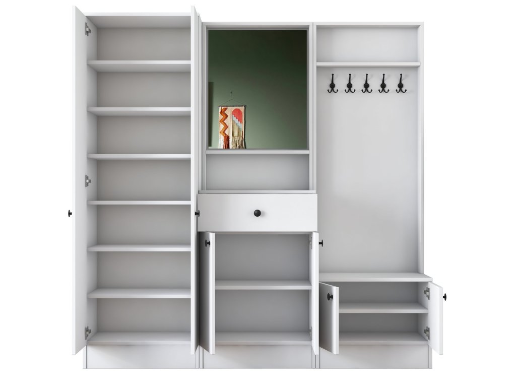| Zostava obsahuje: | šatníková skriňa, skrine na topánky, zrkadlo, vešiak |