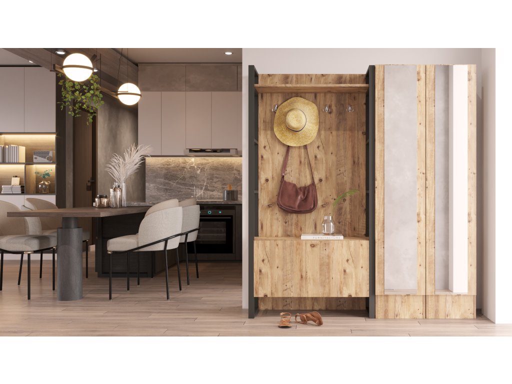 Predsieňová stena so zrkadlom MILI 17, borovica