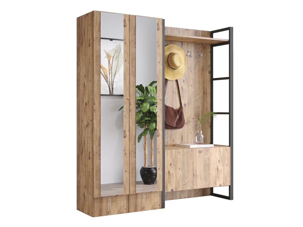 Predsieňová stena so zrkadlom MILI 18, borovica