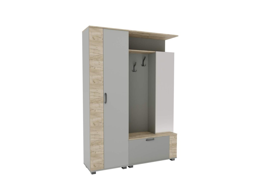 Predsieňová stena so zrkadlom MIRAI, Chincilla grey / Grey craft oak
