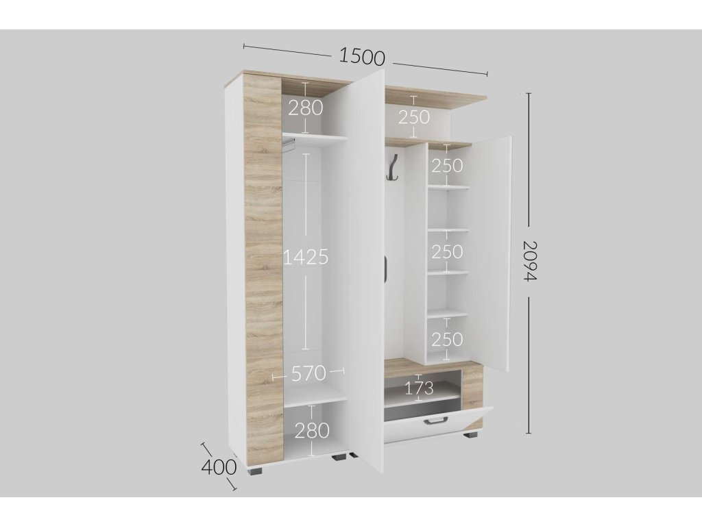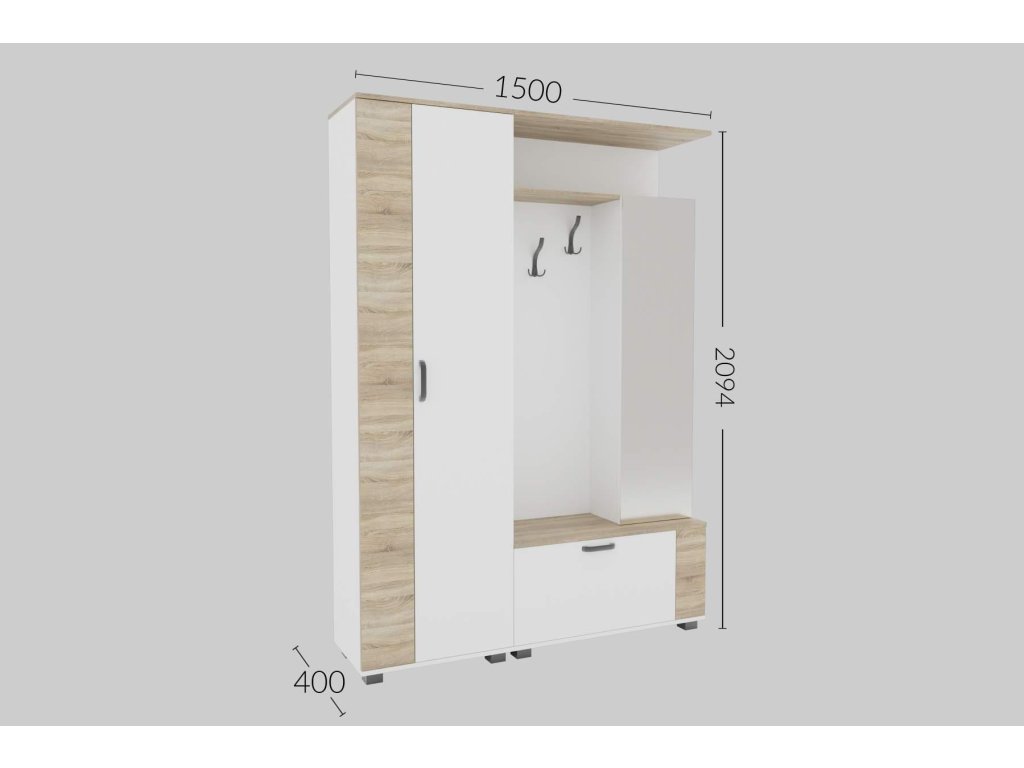 Predsiňová stena MIRAI kombinuje moderný dizajn a vysokú funkčnosť. Jej elegantný vzhľad a praktické usporiadanie poskytujú dostatok úložného priestoru a zároveň skvele doplnia vašu predsieň. Dodávaná v demontovanom stave pre ľahký prevoz a rýchlu montáž. Predsieňová stena sa dá zmontovať so šatníkovou skriňou na ľavej aj pravej strane, takže je úžasne univerzálna.