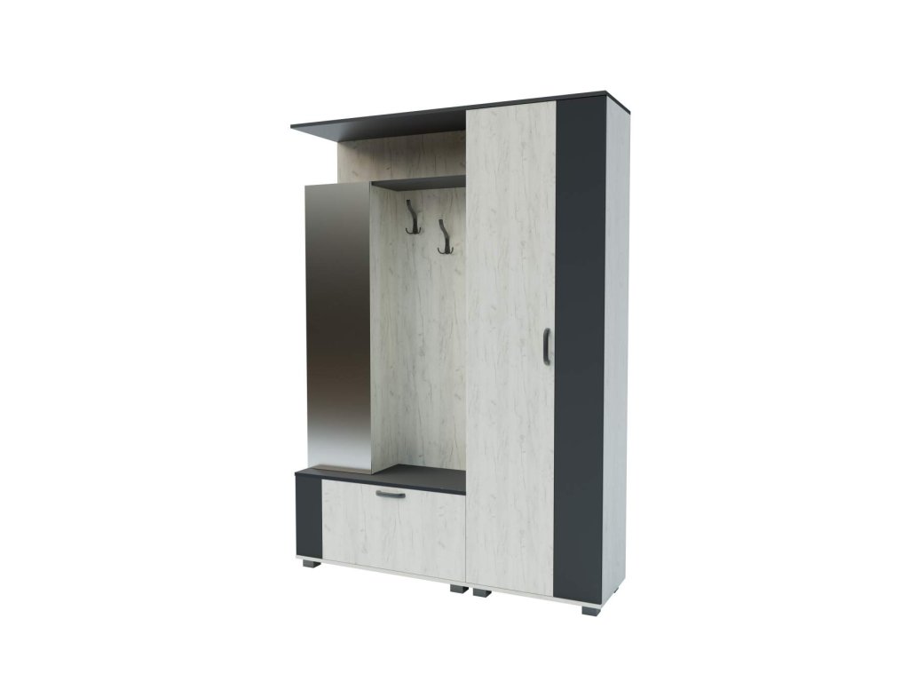 Predsieňová stena so zrkadlom MIRAI, White craft oak / Grafite grey