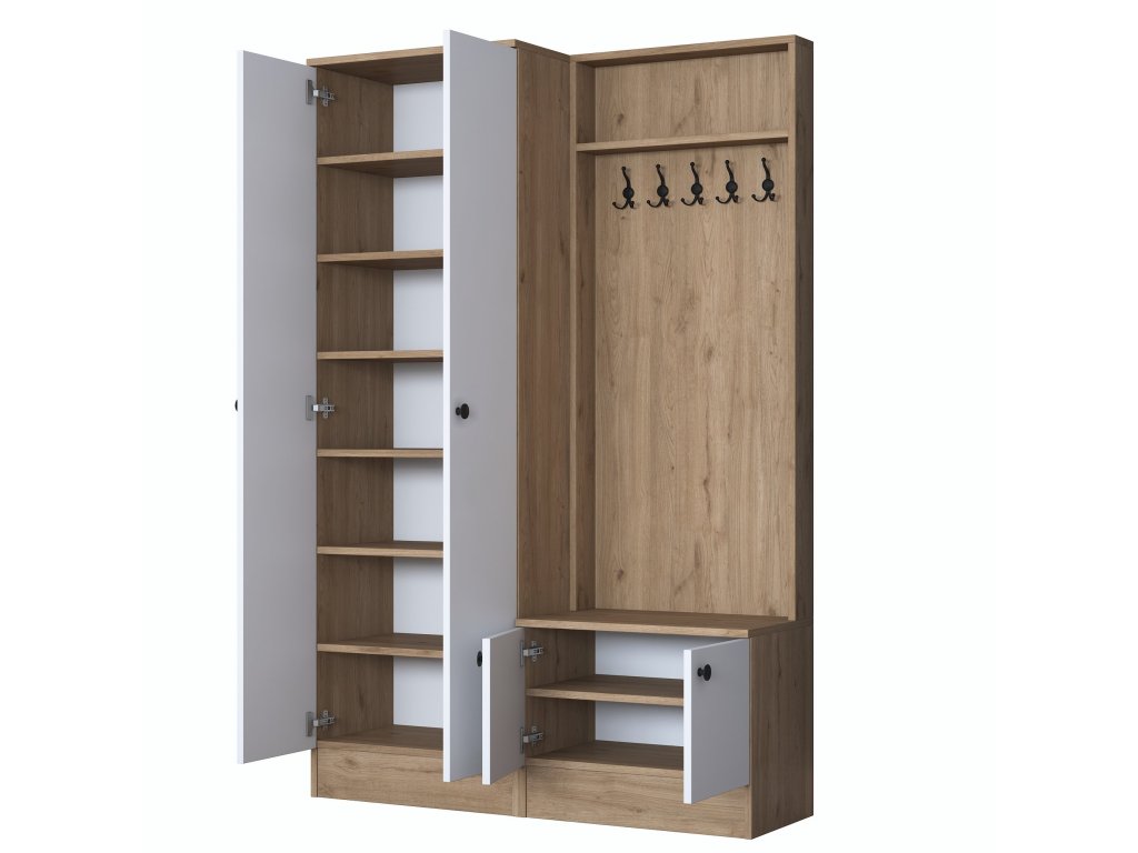 | Zostava obsahuje: | šatníková skriňa, skrinka na topánky, vešiak |