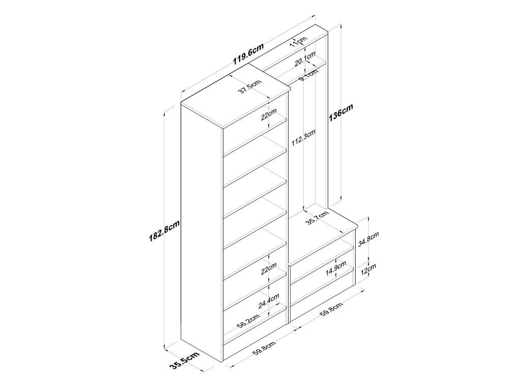 - Rozmery: 182,8 x 119,6 x 37,5 cm – priestranný dizajn vhodný pre väčšie aj menšie predsiene.