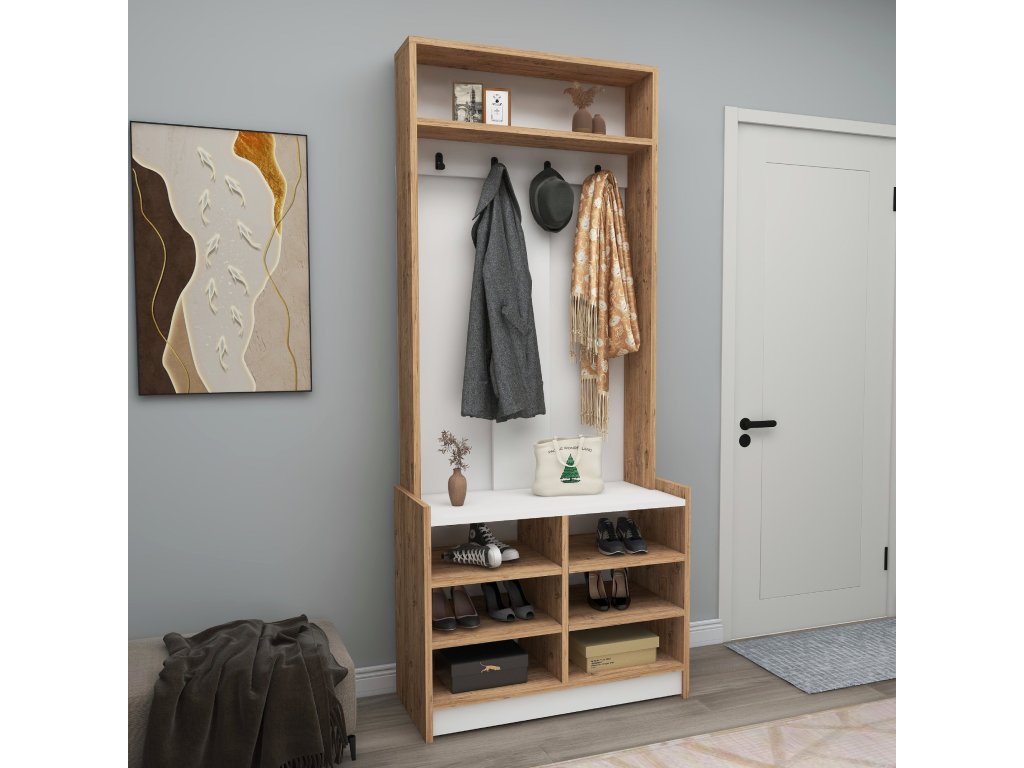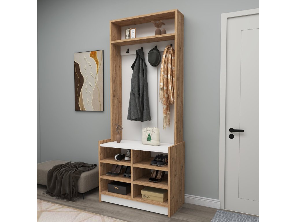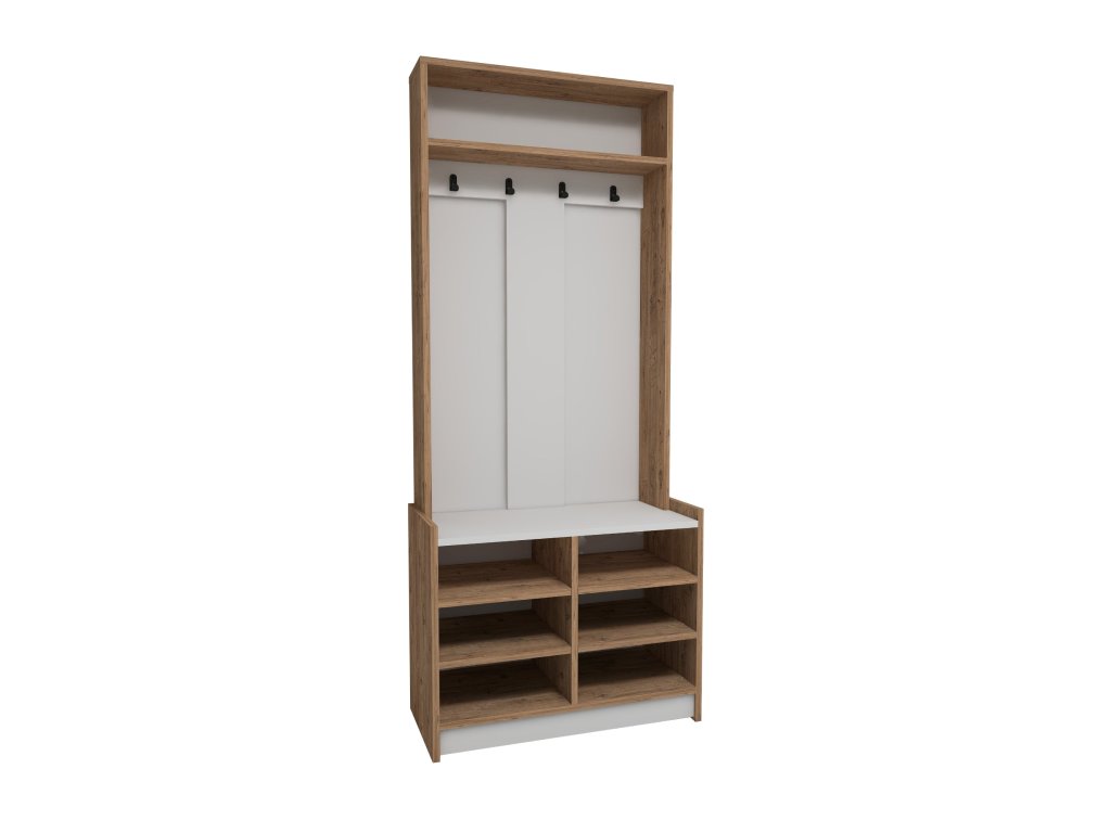 | Zostava obsahuje: | vešiaková stena, polica, regál na topánky |