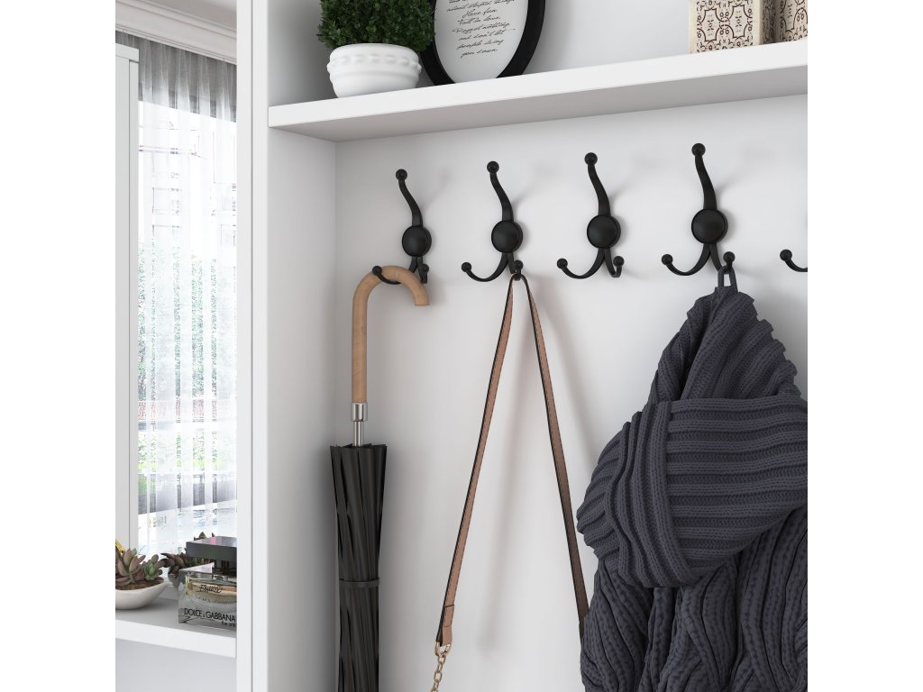 - Vešiak: pohodlné zavesenie tašiek, klobúkov alebo každodenného oblečenia.