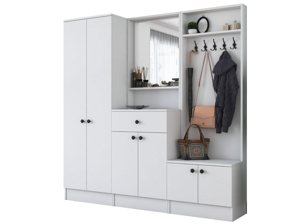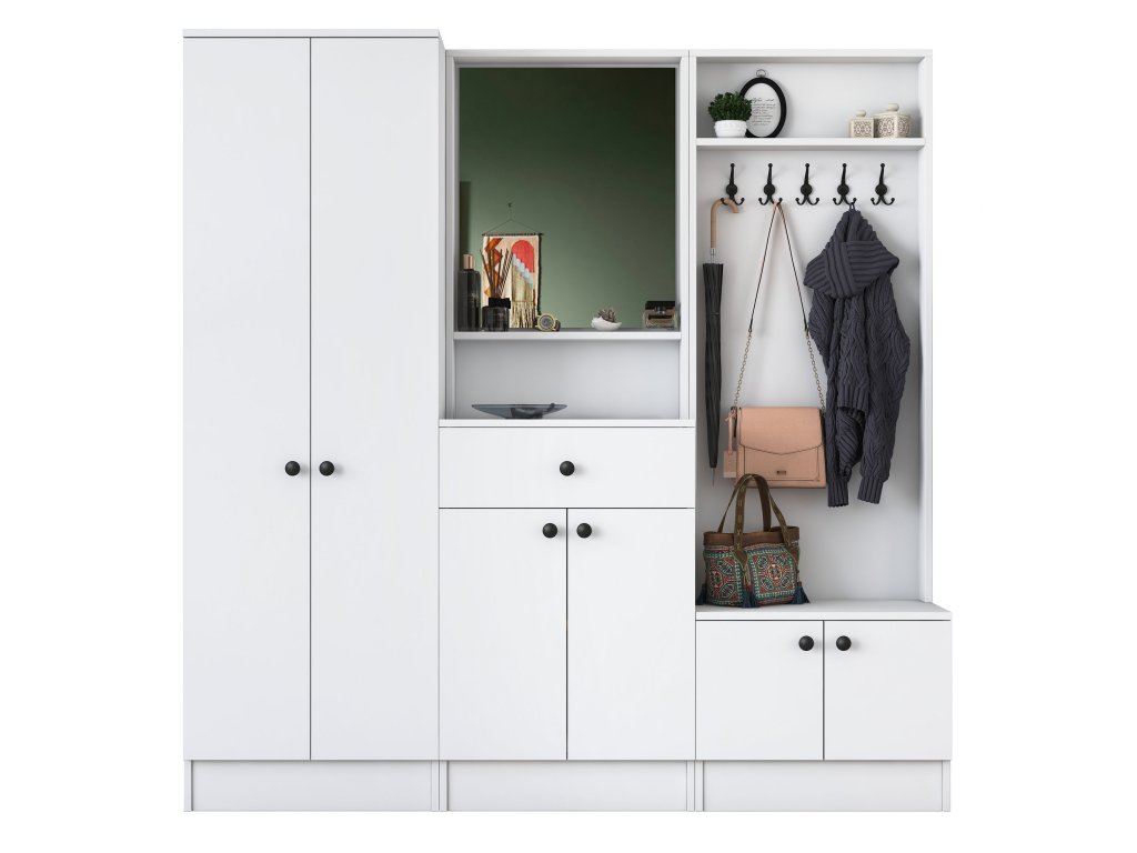 | Zostava obsahuje: | šatníková skriňa, skriňa, skrinka na topánky, zrkadlo, vešiak |