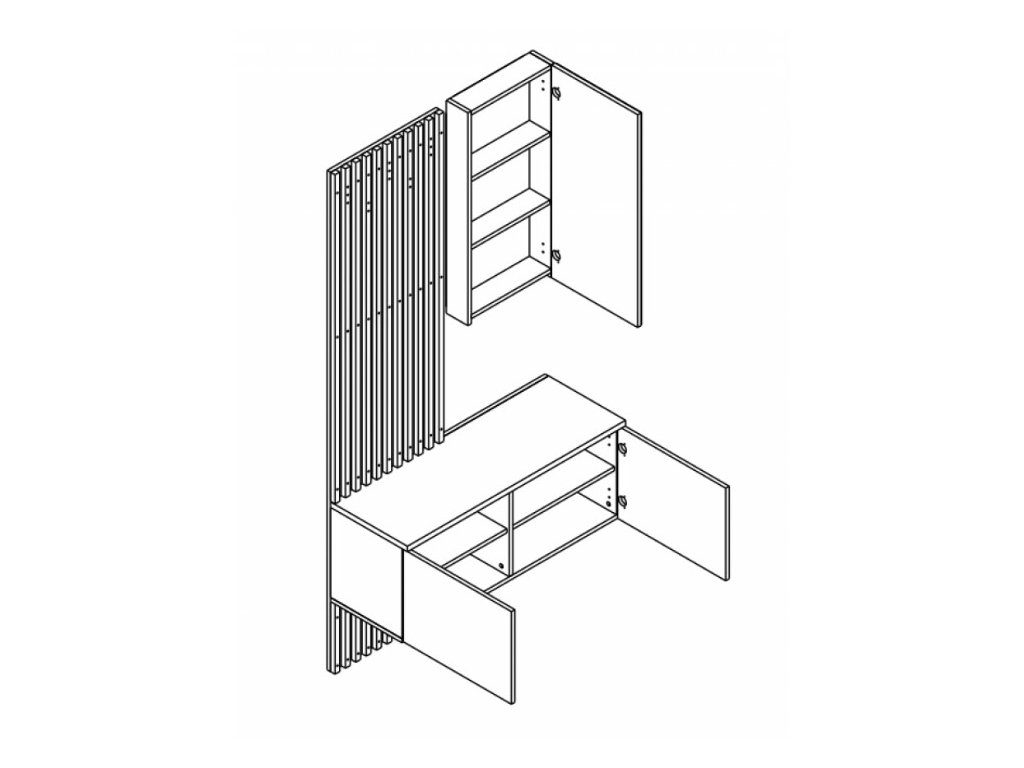 - Komponenty: Lamelový panel, Zrkadlová skrinka, Skrinka na topánky