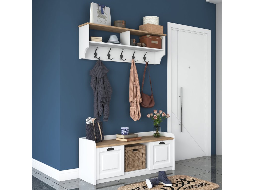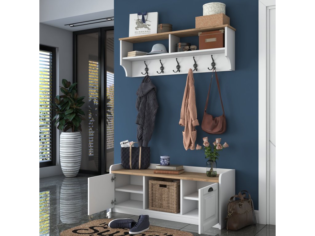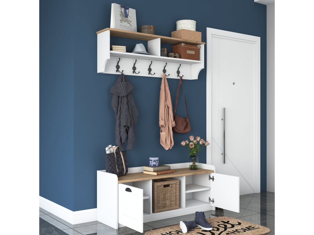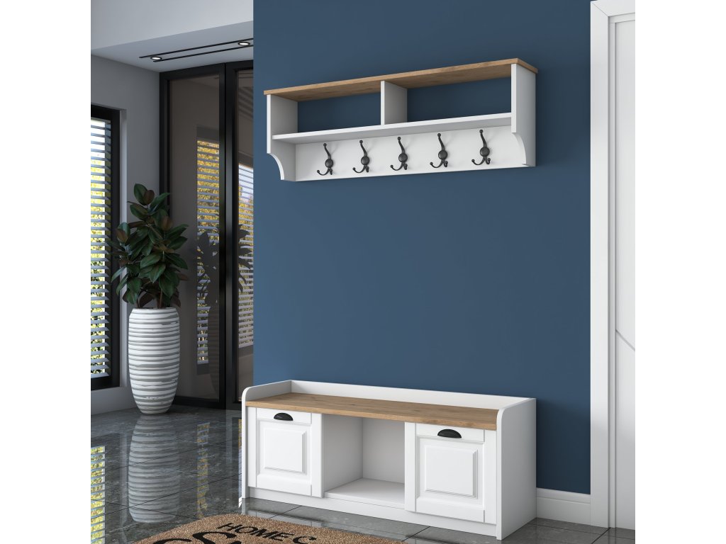 Predsieňová zostava TOVELO, biela/orech