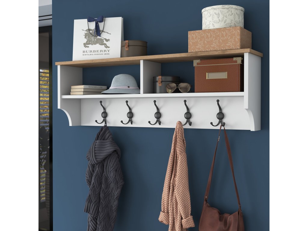- Závesný vešiak s policou: ideálny na zavesenie kabátov, klobúkov alebo tašiek, s praktickou policou pre ďalšie doplnky.