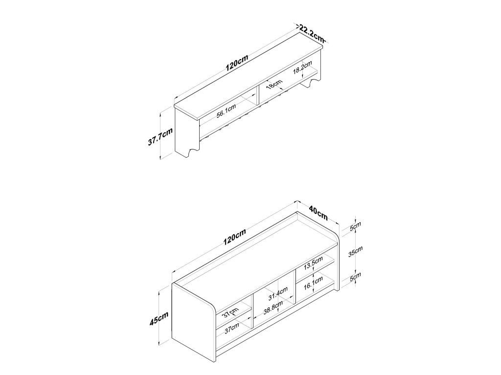 - Rozmery: 45 x 120 x 40 cm – kompaktná veľkosť, ktorá šetrí priestor.