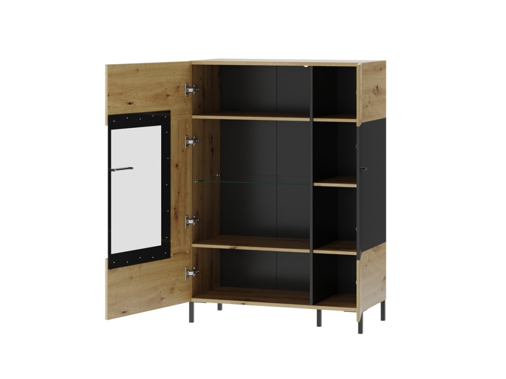 Presklená vitrína LOVENA 15, dub artisan/čierna