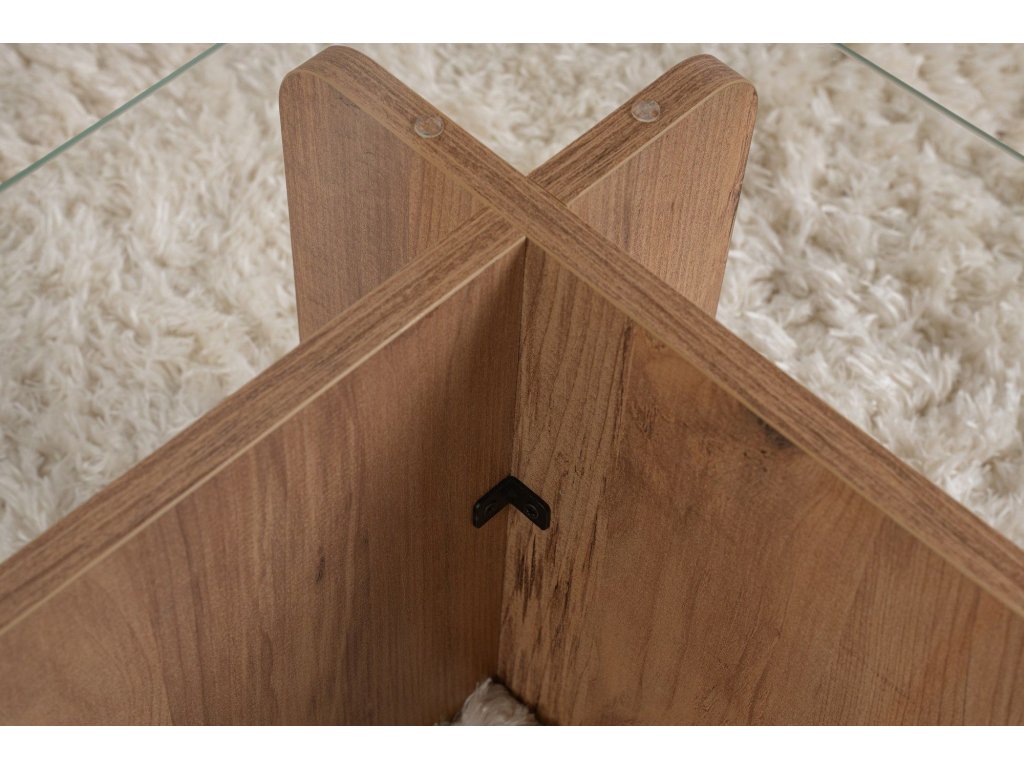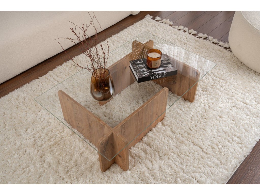 Predstavujeme náš úžasný konferenčný stolík z atlantického borovicového dreva, ktorý vnesie do vášho obývacieho priestoru teplo a eleganciu. Tento stolík, vyrobený zo 100% tvrdeného skla, vyžaruje sofistikovanosť a modernosť. Farba atlantického borovicového dreva dodáva nádych prírodnej krásy, vďaka čomu je všestranným doplnkom každého domova. Jeho elegantný dizajn a vysoko kvalitné materiály okamžite pozdvihnú vzhľad a atmosféru vášho priestoru a vytvoria príjemnú a štýlovú atmosféru pre vás aj vašich hostí. dlhotrvajúcu krásu a funkčnosť. Rám vyrobený zo 100% drevotriesky s melamínovým povlakom poskytuje stabilitu a oporu pre všetky nevyhnutnosti vašej obývacej izby.