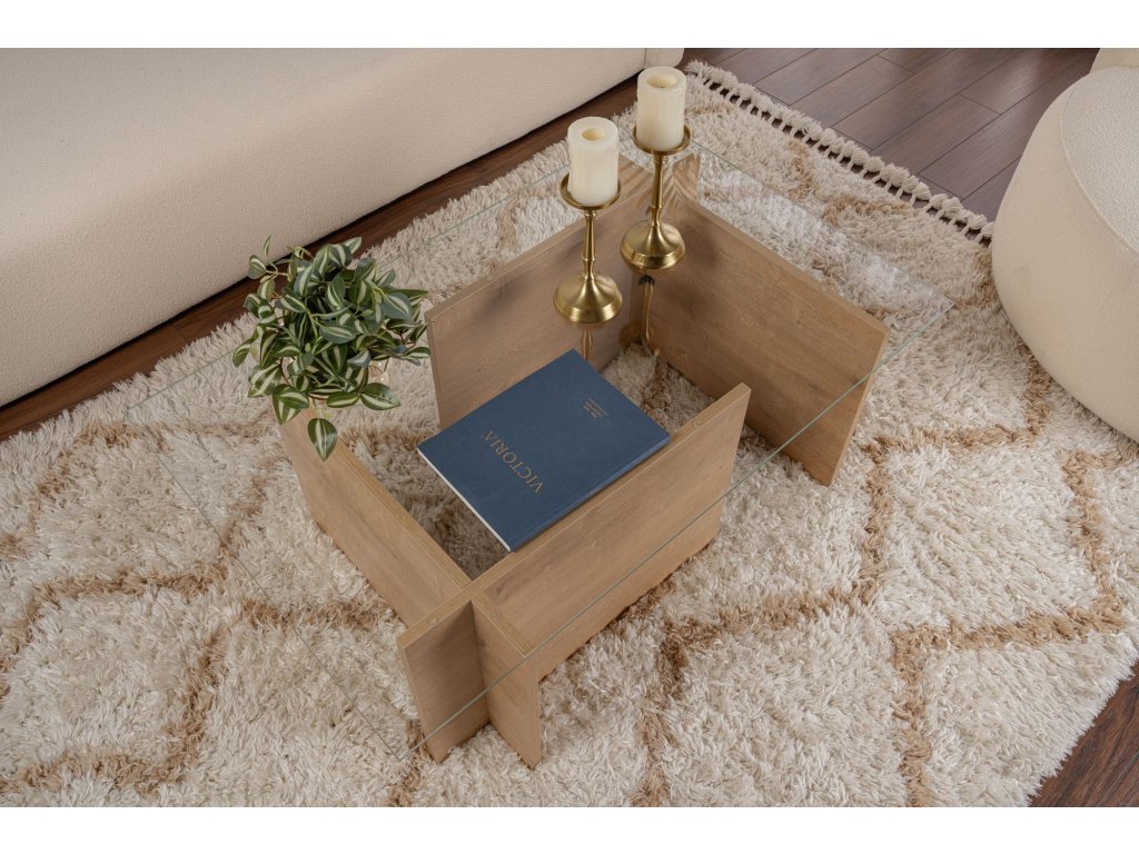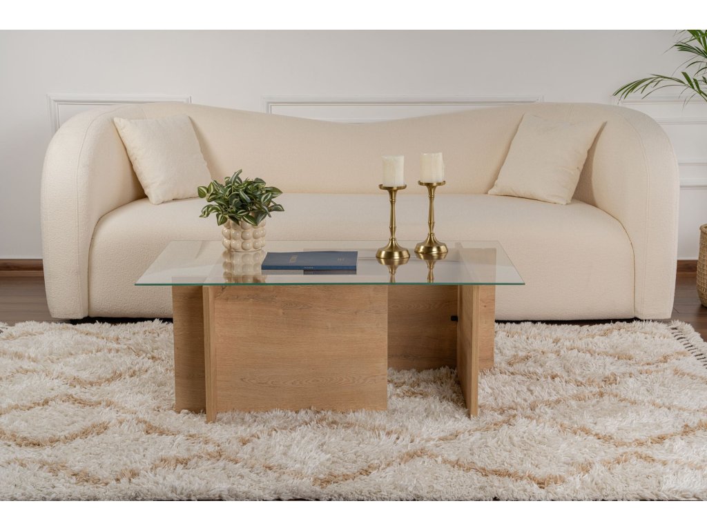 Tento konferenčný stolík je vyrobený zo 100% tvrdeného skla a má robustný rám z drevotriesky s melamínovým povlakom a je vyrobený. Hrúbka 18 mm zaisťuje odolnosť a stabilitu, zatiaľ čo farba medového duba dodá vašej obývačke nádych tepla. povlakom