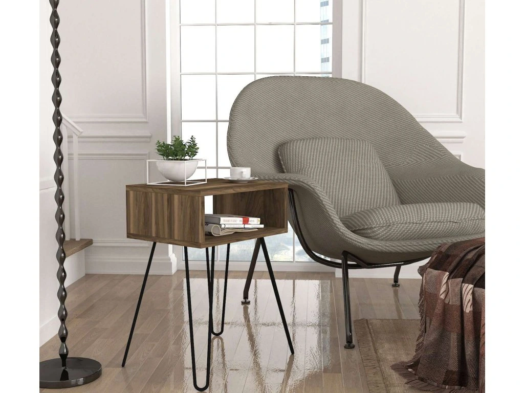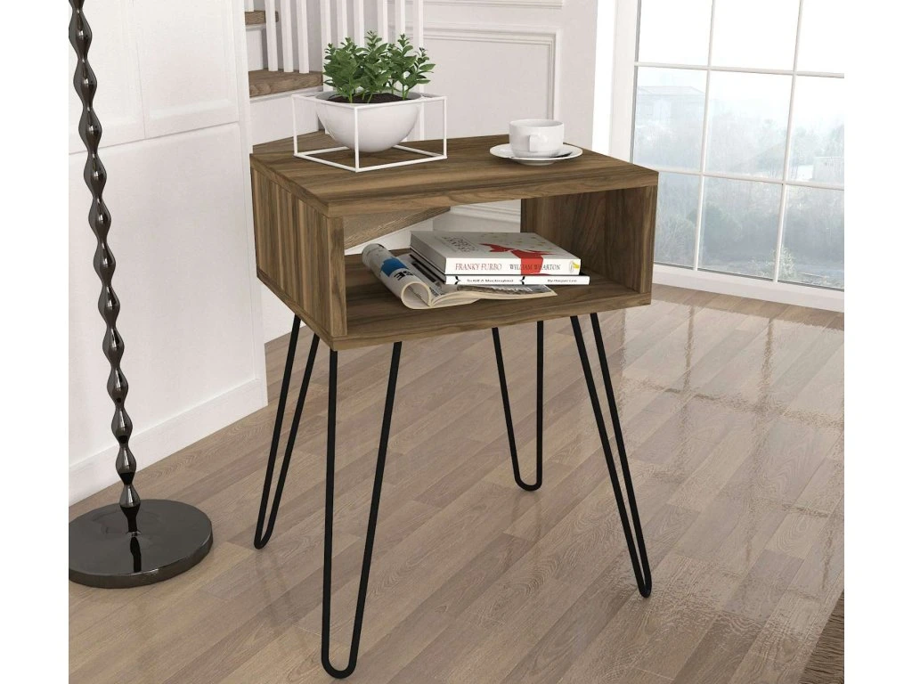 Stolík TRAUMA vyniká svojim orechovým dizajnom a obdĺžnikovým tvarom, ktorý je nielen praktický, ale aj esteticky atraktívny. Vďaka odkladacej polici poskytuje dostatok úložného priestoru pre vaše knihy, časopisy alebo dekorácie. Kombinácia LTD materiálu s hrúbkou 18 mm a kovu zaisťuje pevnosť a dlhú životnosť tohto stolíka.