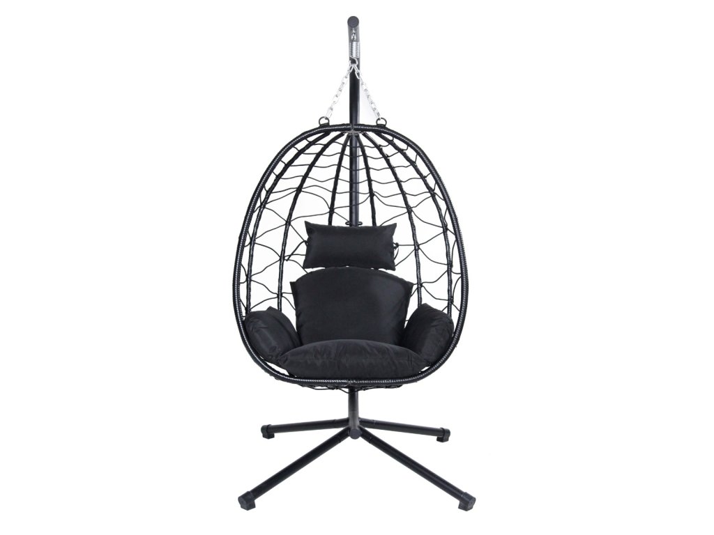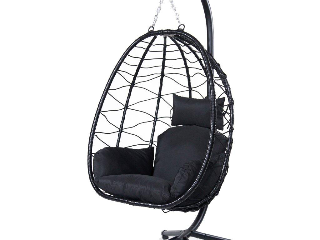 Ratanové závesné hojdacie kreslo VOGRI, čierna