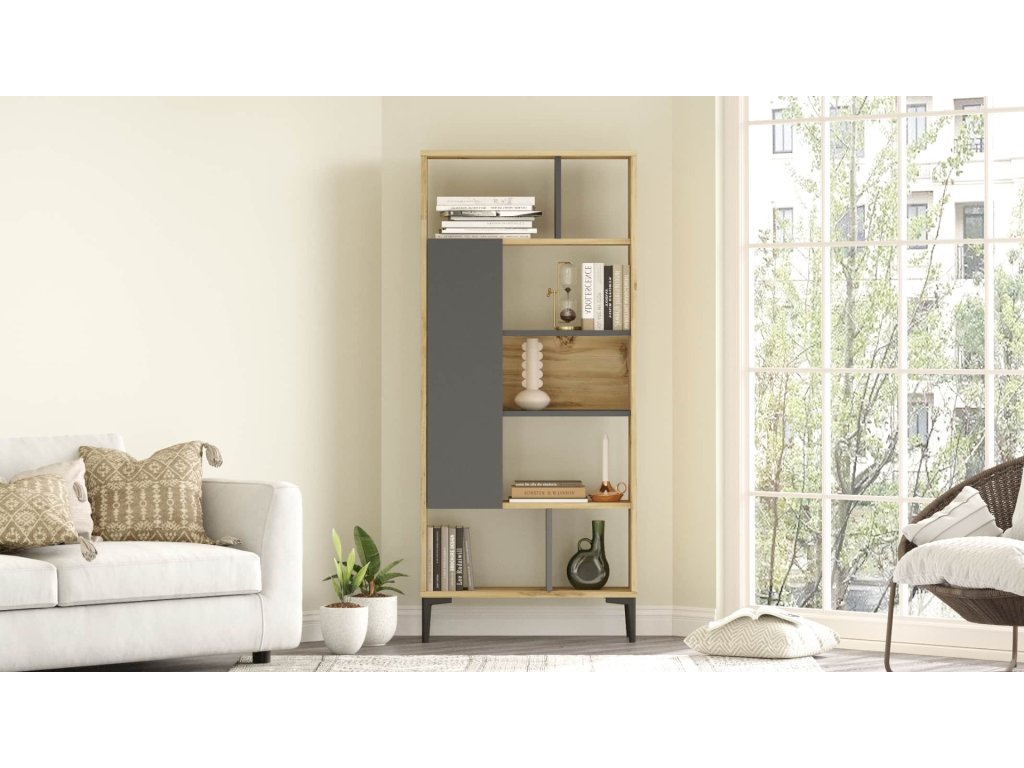 Regál vhodný do obývačky. Ponúka praktické úložné priestory a odolný materiál.