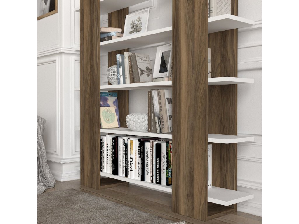 Moderná knižnica BIG POLVas zaujme svojimi čistými líniami, ktoré sú ideálne do moderných interiérov. Zaujímavo riešený úložný priestor poskytuje ideálne miesto na uloženie kníh, ale aj dekorácií či kvetín. Štýlové farebné prevedenie v kombinácii dvoch farieb podčiarkuje jeho moderný dizajn. Regál je možné umiestniť k stene alebo voľne do miestnosti, čím vznikne zaujímavé členenie priestoru. 120 x 19,5 x 120 cm (podrobnejšie rozmery v nákrese)