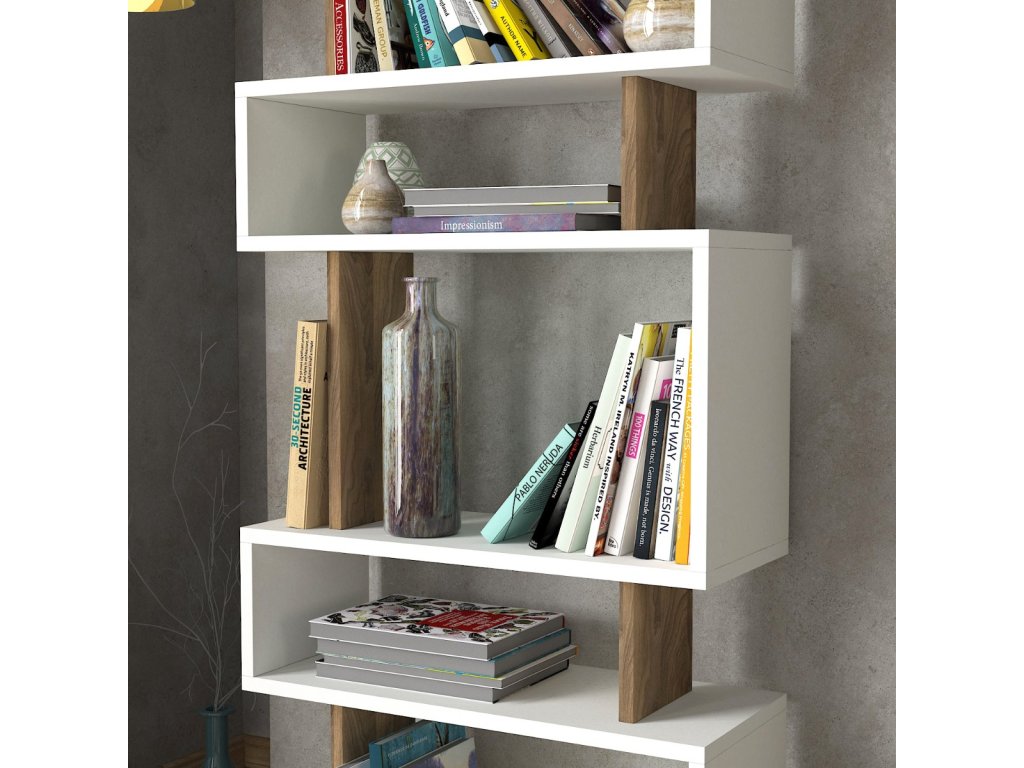 Regál CLOK, biela / orech