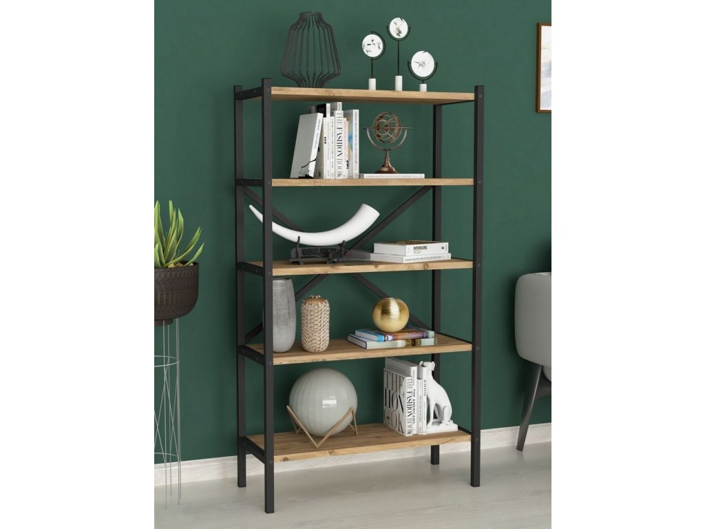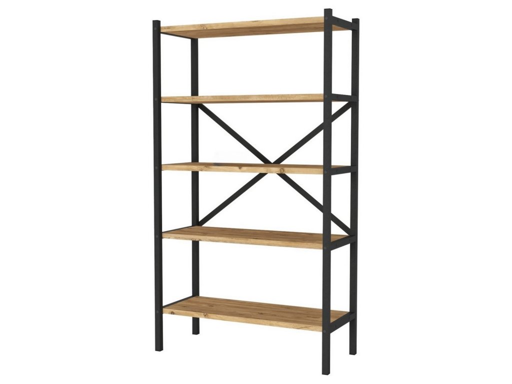Dosky regálu sú vyrobené z 18 mm drevotrieskovej dosky. Konštrukcia je vyrobená z kovu v čiernom prevedení.