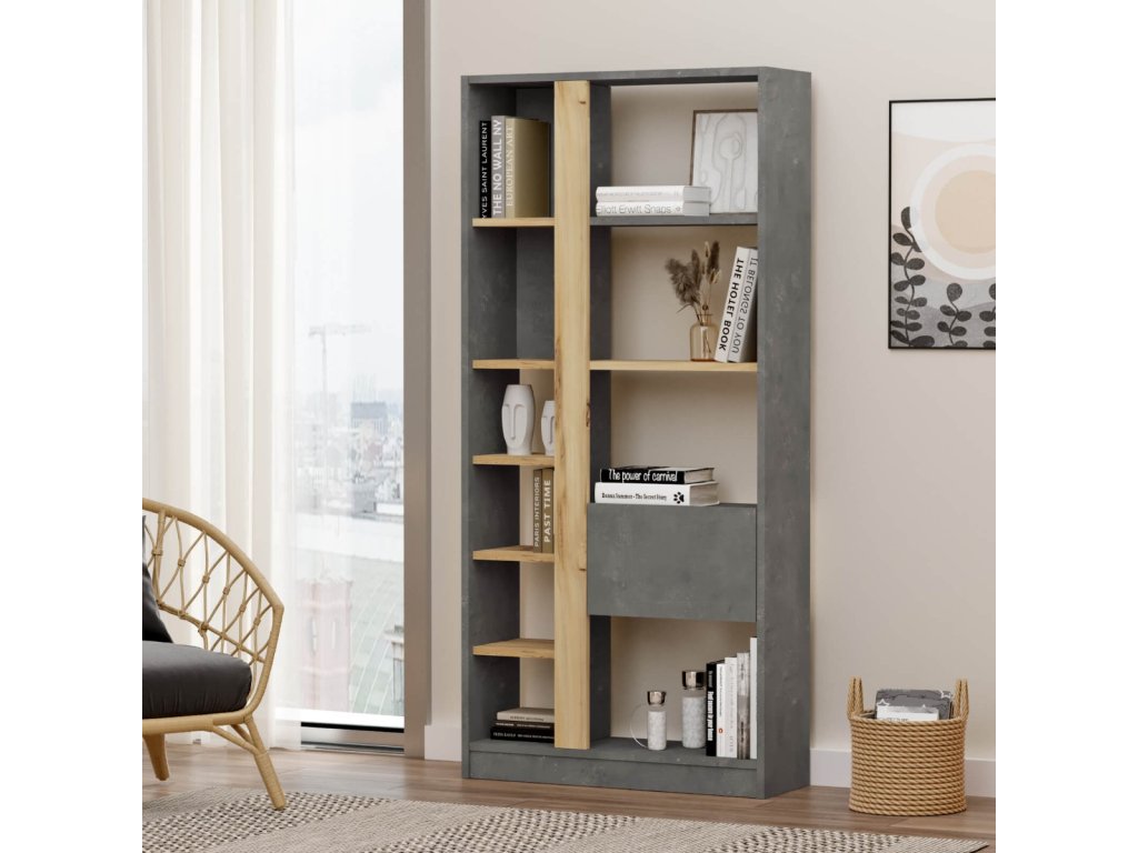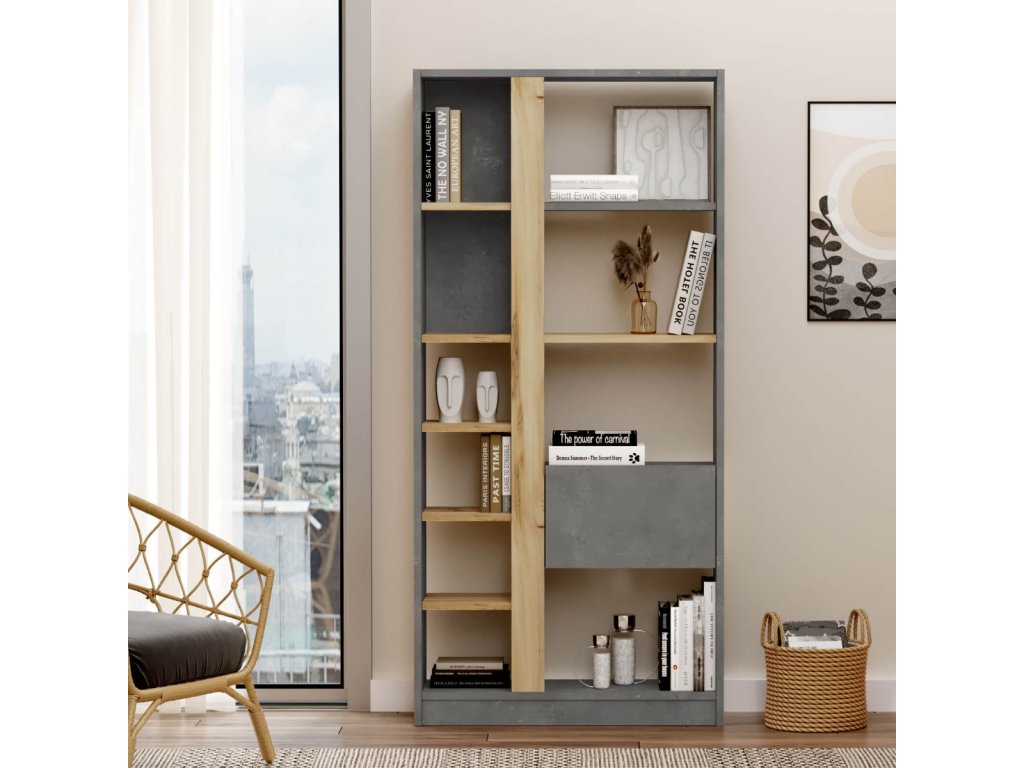 Regál LEVY 21, farba betón + dub Left