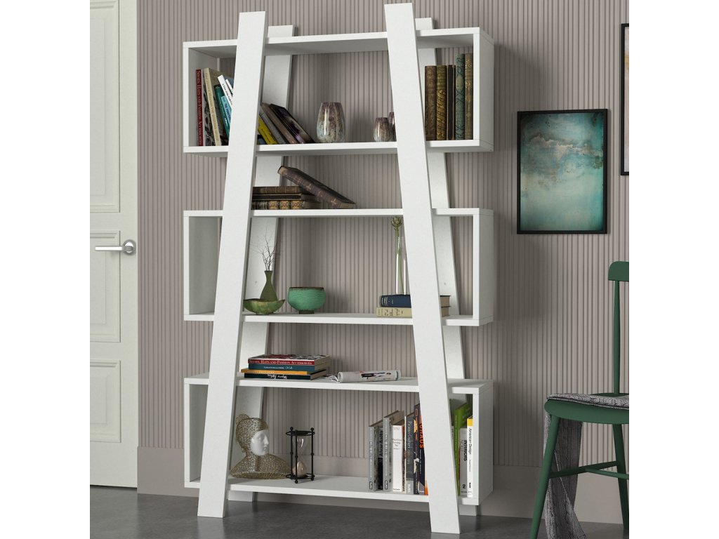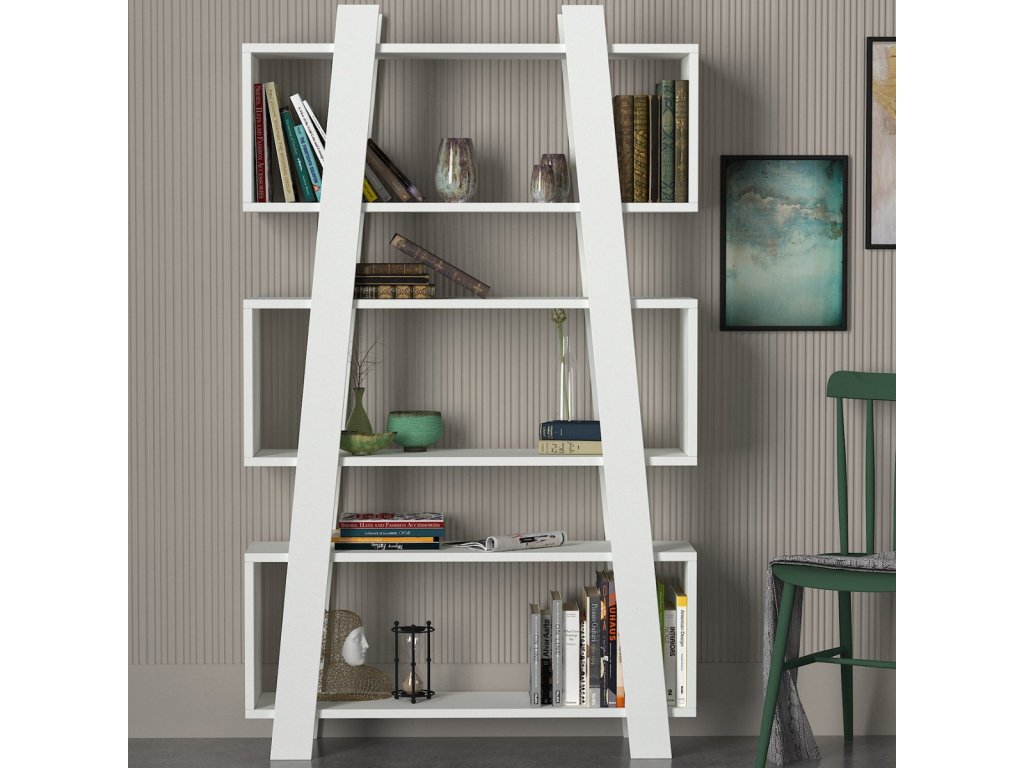 Moderný regál MIRAVas zaujme svojimi čistými líniami, ktoré sú ideálne do moderných interiérov a zaujímavým dizajnom. Regál je ideálny na uloženie kníh, ale aj dekorácií či kvetov. Neutrálne biele farebné prevedenie podčiarkuje jeho moderný design.