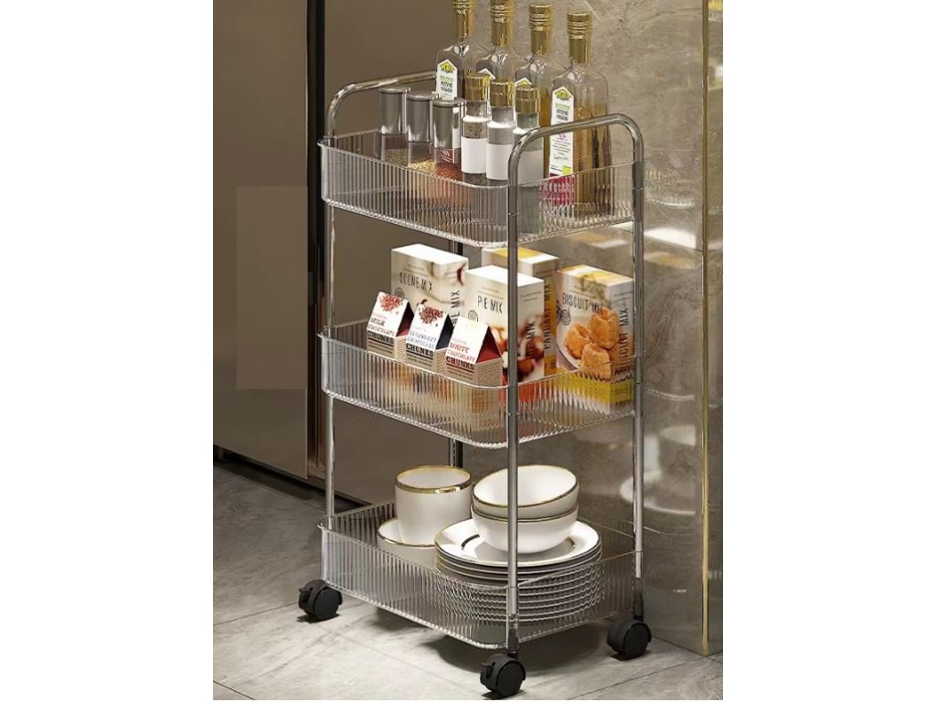 Praktický regál GINA 3 je ideálnym kúskom do kuchyne, či komory. Tento skvelý pomocník v nerezovej farbe ponúka dostatok úložného priestoru v podobe troch plastových košíkov, ktoré poslúžia ako nádoby na potraviny, ovocie alebo čokoľvek iné podľa vašich požiadaviek. Plastové otočné kolieska zabezpečujú jednoduchú manipuláciu.