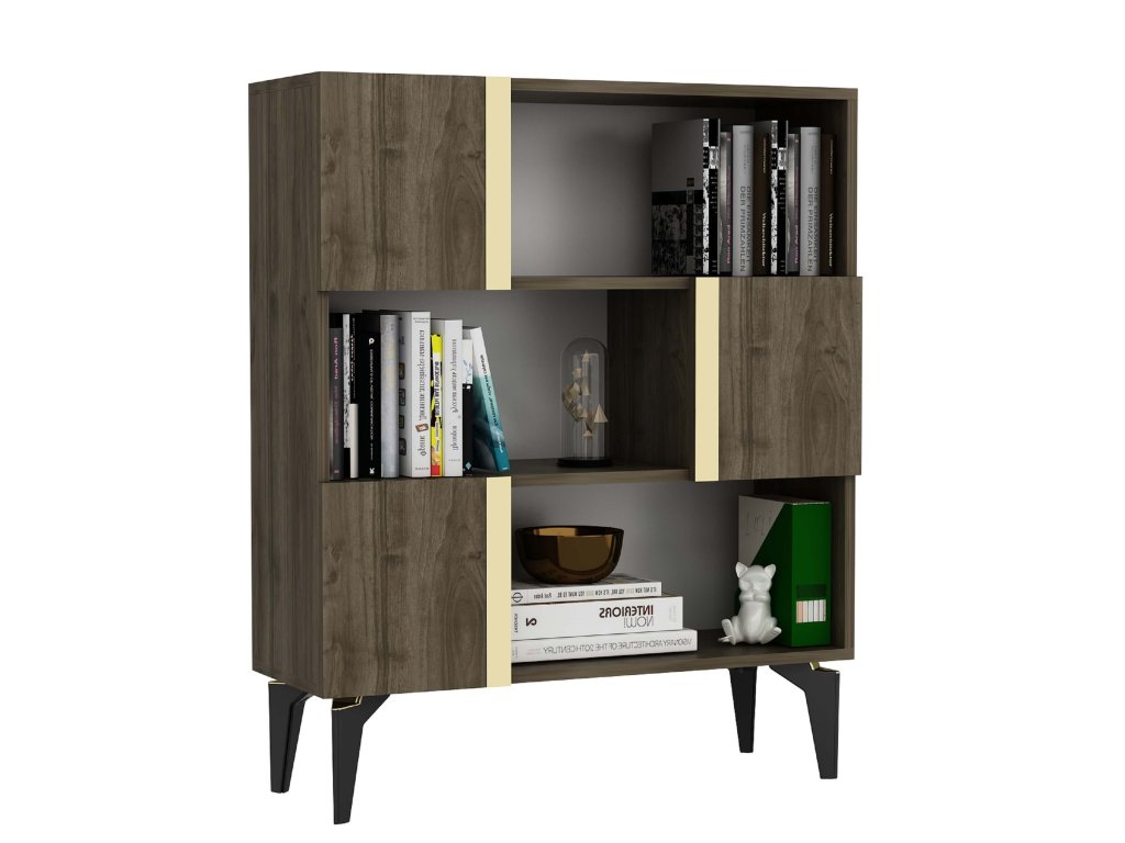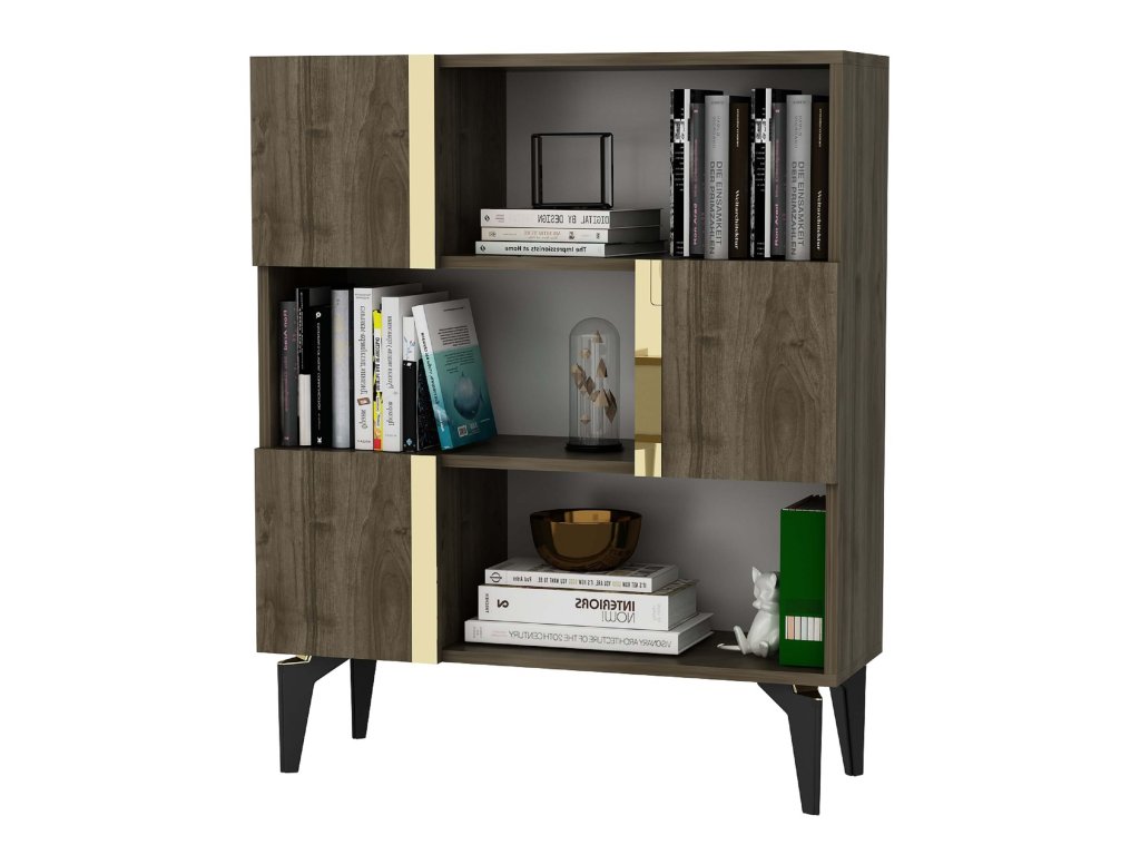 Regál na nožičkách SERBIA, orech/zlatá