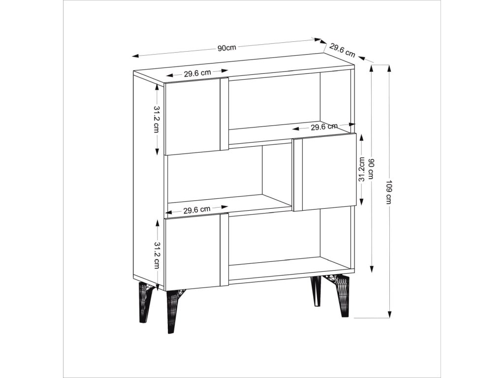 S rozmermi 109 x 90 x 29,6 cm je knižnica SERBIA navrhnutá tak, aby efektívne využívala priestor a zároveň poskytovala elegantné úložné riešenie. Vyrobená z kvalitného LTD materiálu, ktorý zaisťuje pevnosť a dlhú životnosť. Plastové nožičky zaisťujú stabilitu a chránia podlahu pred poškriabaním.