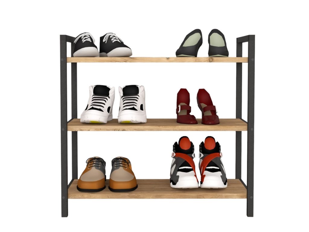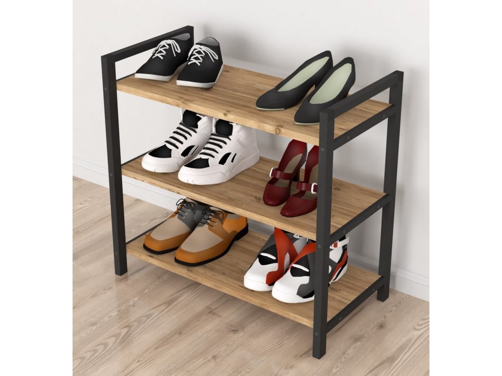 Regál na topánky NAMUR 3 SR, borovica/čierna