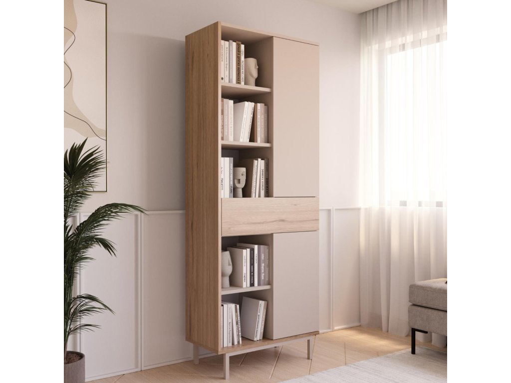 Knižnica DREAM je elegantný a priestranný nábytok navrhnutý pre modernú obývačku. Kombinácia dekoru sepet a béžová vytvára teplý a nadčasový vzhľad, ktorý sa harmonicky začlení do rôznych štýlov interiéru. Vysoké prevedenie ponúka dostatok priestoru na knihy aj dekorácie.