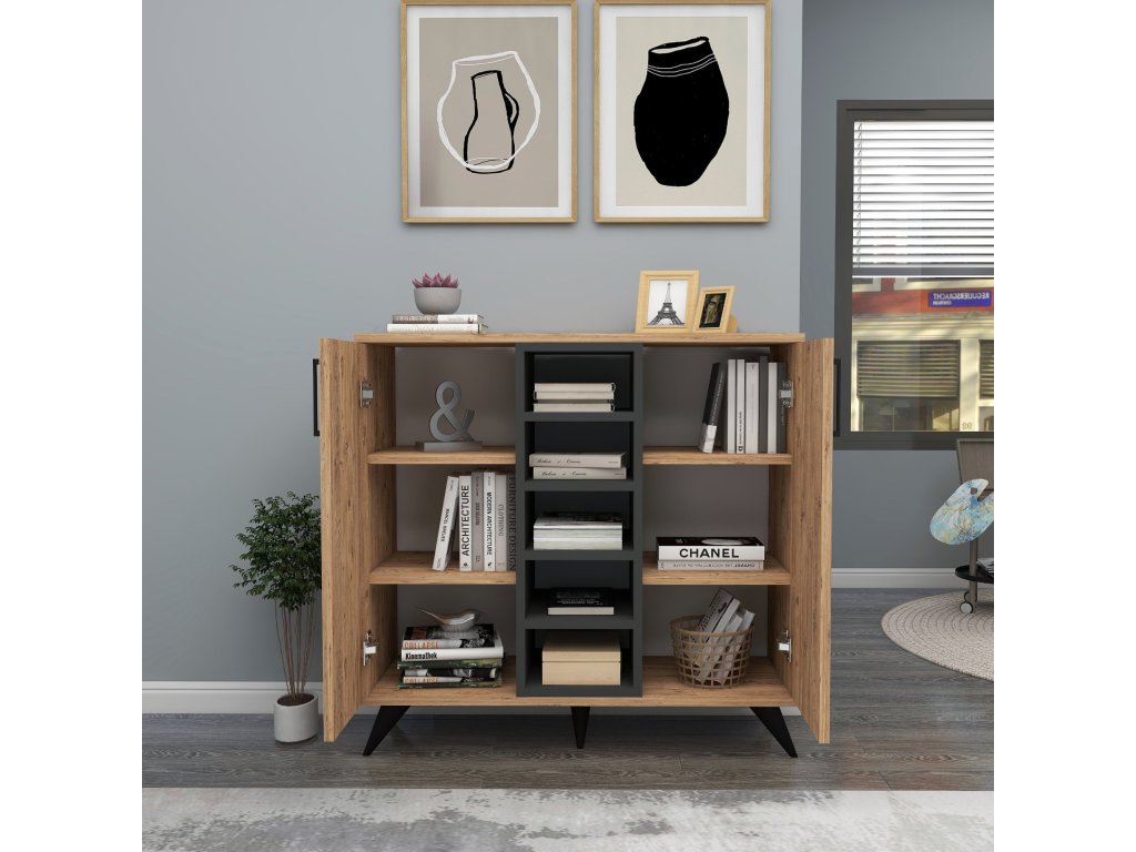 Knižnica PETER je skvelou voľbou pre usporiadanie kníh, dekorácií alebo iných drobností, ktoré chcete mať vždy na dosah ruky. Plné dvierka dodávajú nábytku čistý a elegantný vzhľad, zatiaľ čo kvalitné spracovanie zaisťuje jeho dlhú životnosť. Kúpte si knižnicu PETER a dodajte svojej obývačke praktický a estetický prvok!