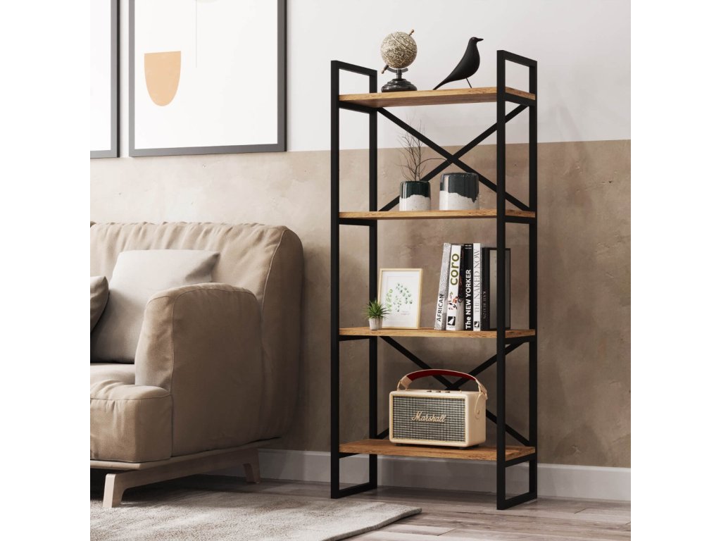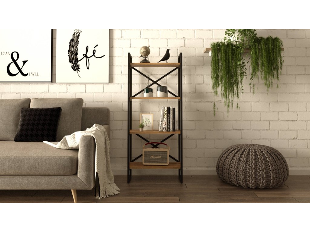 Regál VEGY 1, farba borovice + čierny kov