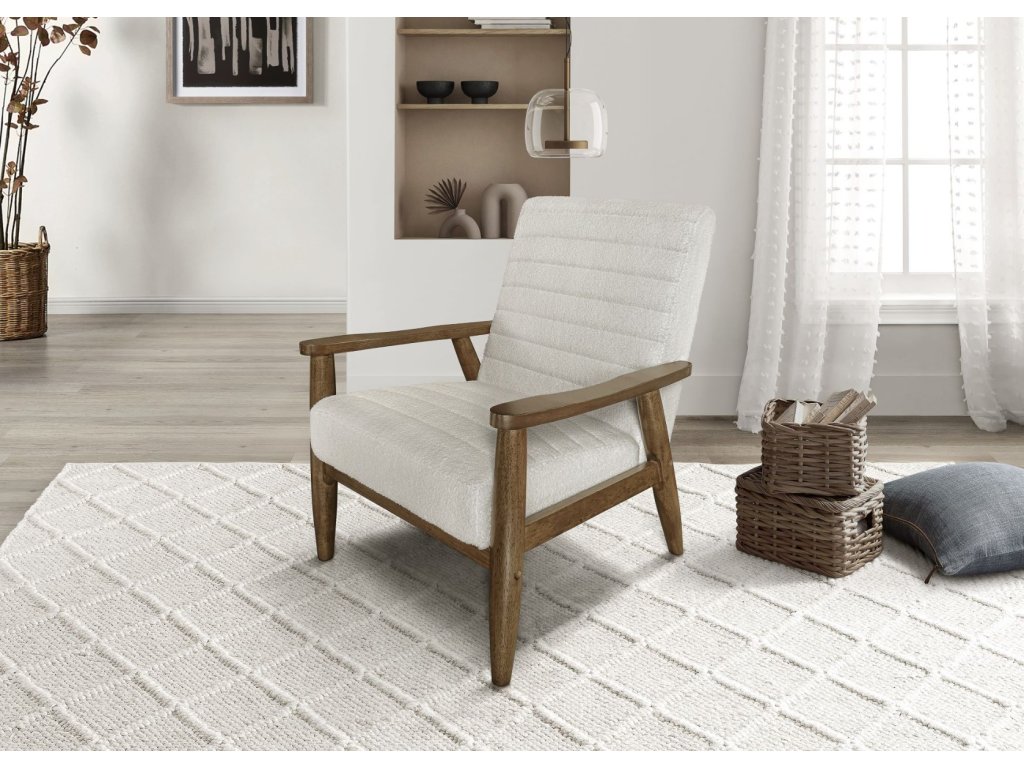 SHAZAM je štýlové čalúnené retro kreslo ktoré plní nielen funkčnú ale aj estetickú funkciu. Sedacia časť je vyrobená kombináciou vlnovcovej pružiny a PUR peny. Tým je zabezpečené pohodlné - mäkké sedenie. Nohy aj podrúčky kresla sú vyrobené z masívneho drevavo farbe orech. Kreslo je čalúnené kvalitnou bielou látkou "baranček".