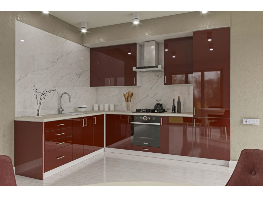 Rohová kuchynská linka 300 KAISER, bordo lesk