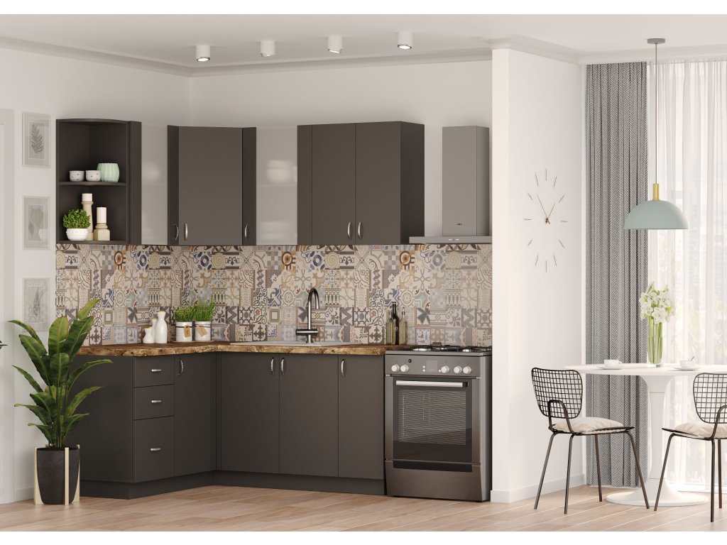 Rohová kuchynská linka BERHIL, antracit