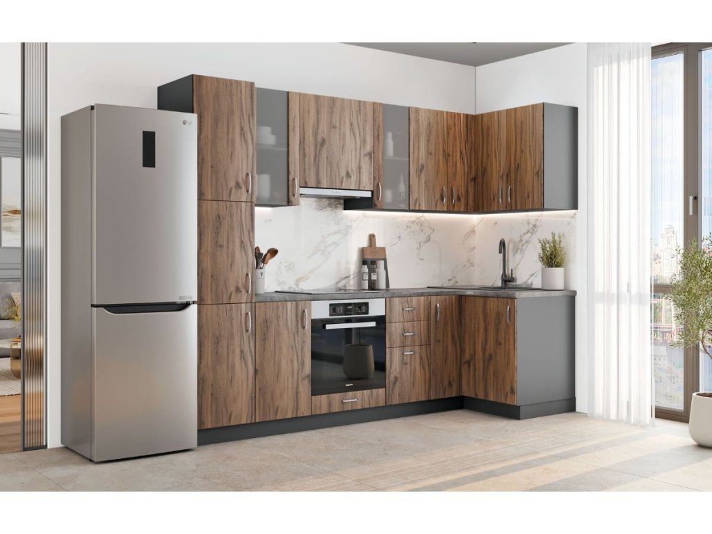 Rohová kuchynská linka REMADA, dub Livorno/antracit