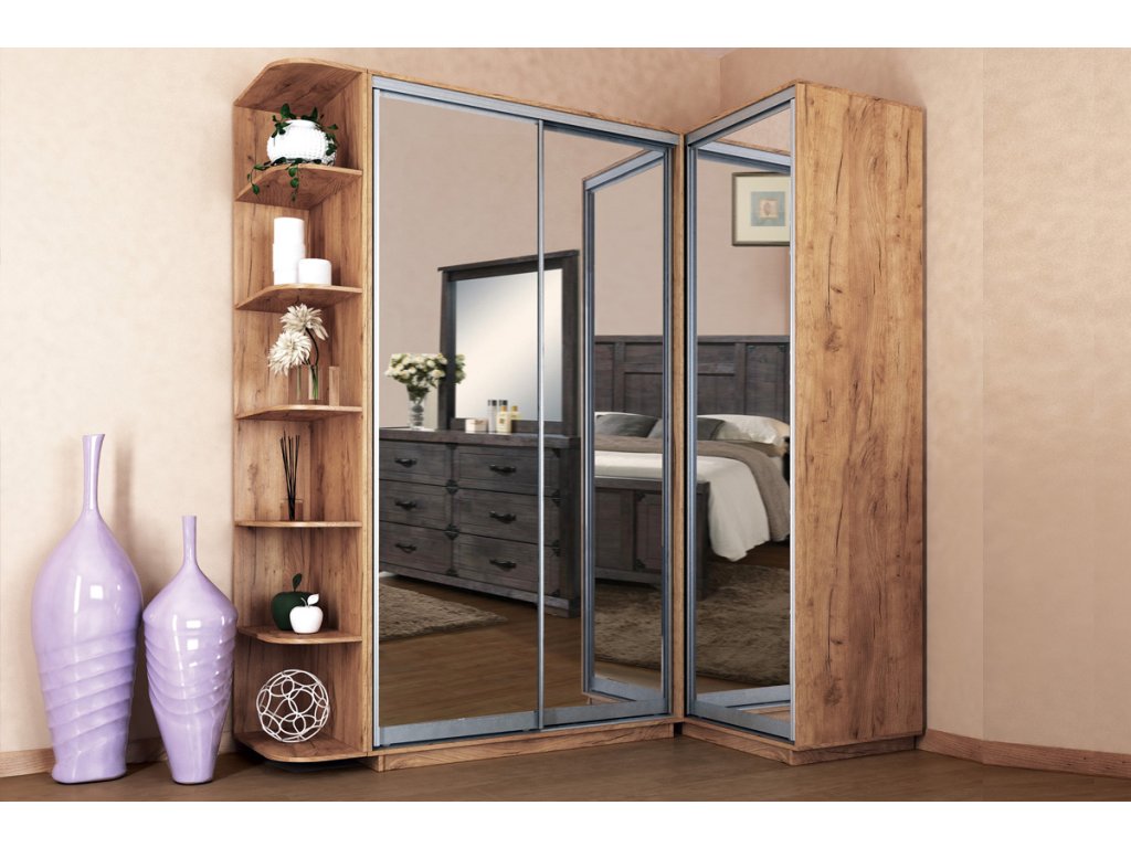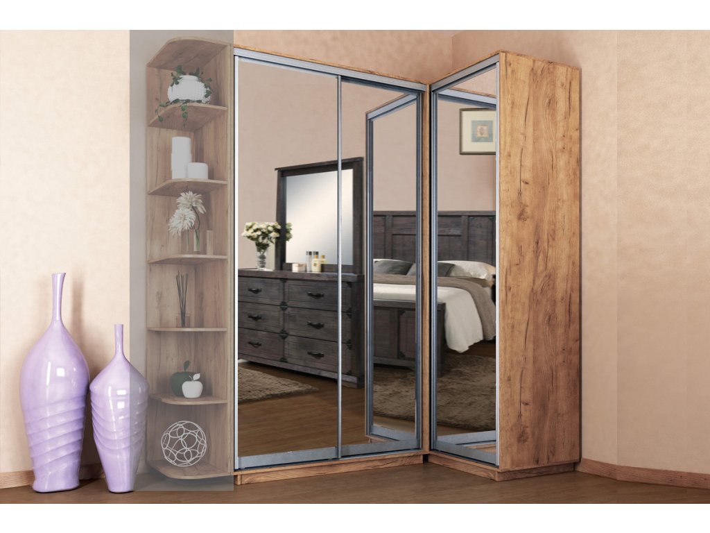 Rohová šatníková skriňa LAVAN, dub zlatý/zrkadlo