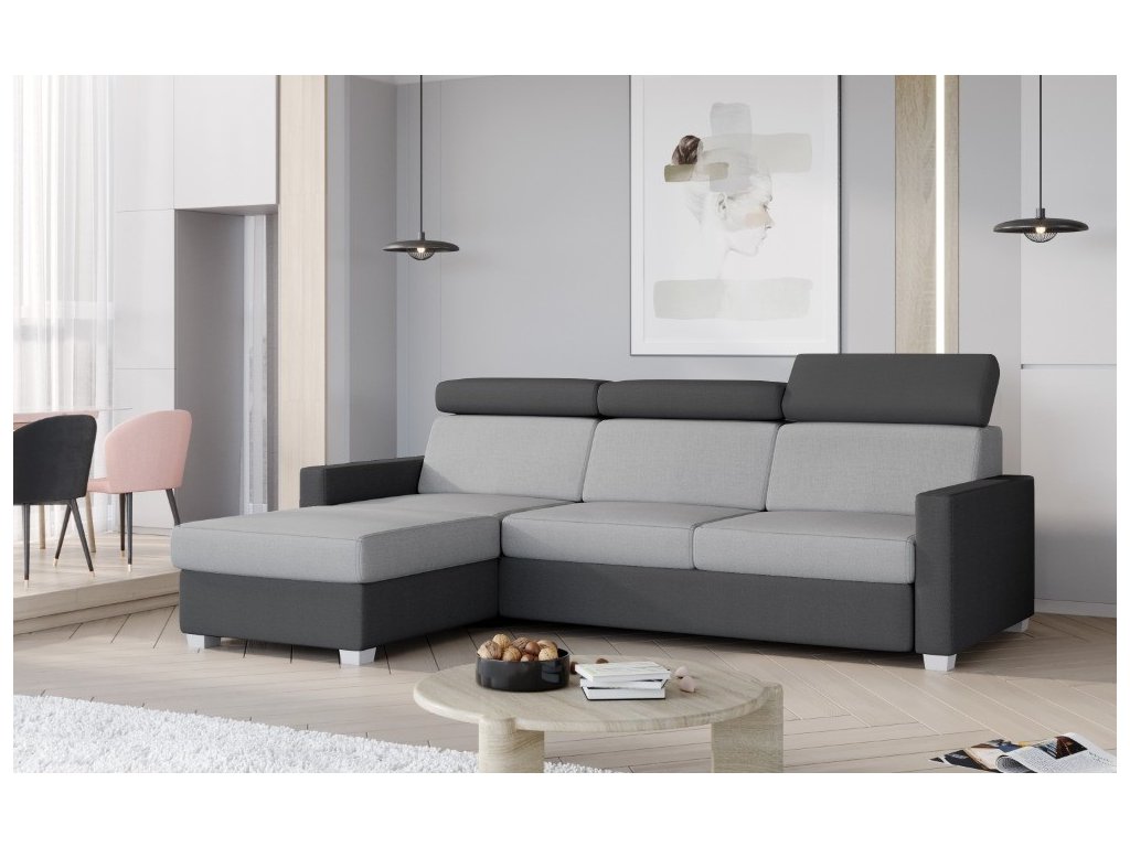 Moderná rohová sedačka KRISTIAN vám poskytne dostatok miesta a pohodlia. Okrem elegantného vzhľadu sedačka ponúka aj možnosť rozkladu. Okrem funkcie rozkladu sedačka ponúka aj praktický úložný priestor skrytý pod sedením a polohovacie záhlavníky. Sedák je vyrobený z PUR peny, ktoré vám poskytnú pokojný a nerušený spánok.