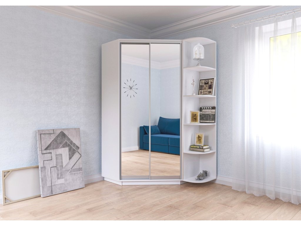 CORZA šatníková skriňa do rohu so zrkadlom na dvierkach.