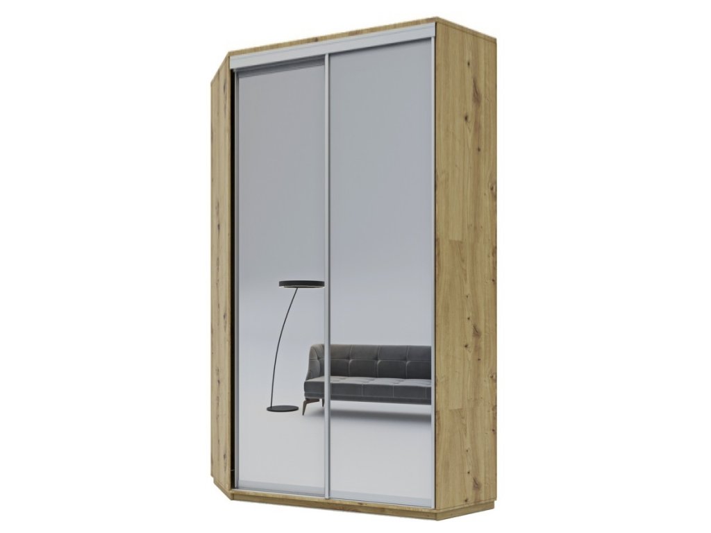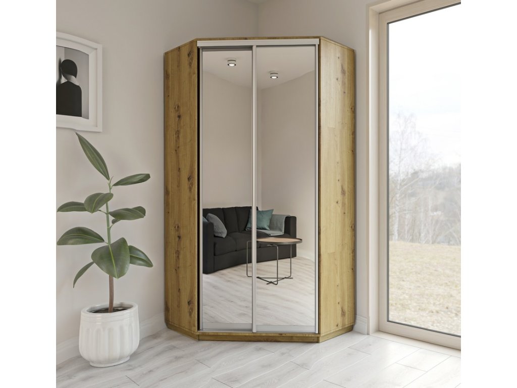 CORZA šatníková skriňa do rohu so zrkadlom na dvierkach.