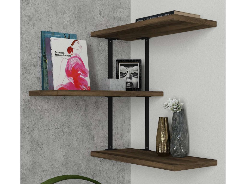 Nástenná polica RIBIS je vyrobená z kvalitného materiálu LTD s hrúbkou 18 mm, čo zaisťuje jej dlhú životnosť a odolnosť. Jej atypický tvar a elegantný dizajn vo farbe orecha dodáva každému interiéru moderný a industriálny nádych. Táto polica sa perfektne hodí do obývacej izby aj spálne, kde poskytuje praktické a štýlové riešenie na vystavenie vašich obľúbených predmetov.