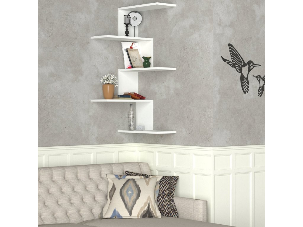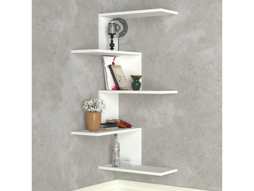 Zaujímavý rohový regál KANIS je ideálny na využitie miesta v rohu, ktoré by inak zostalo nevyužité. Ponúka originálny odkladací priestor na knihy, dekorácie či kvety. Vďaka jednoduchému modernému štýlu sa hodí do každého domova. Vyrobený je z laminovanej drevotriesky. Hrúbka materiálu: 1,8 cm.