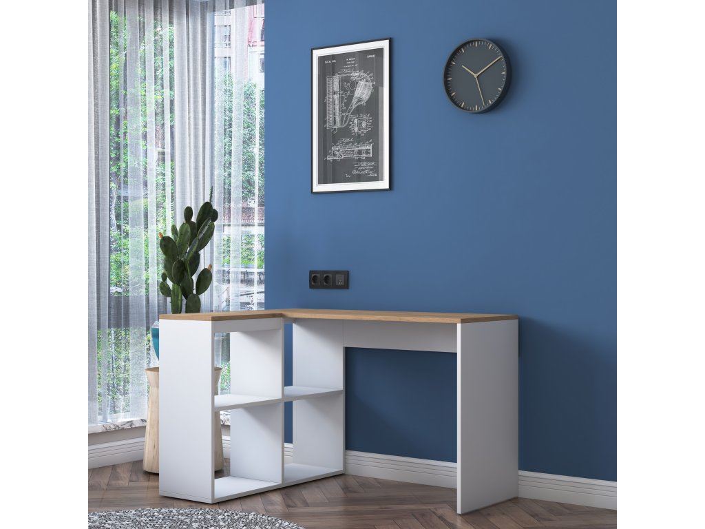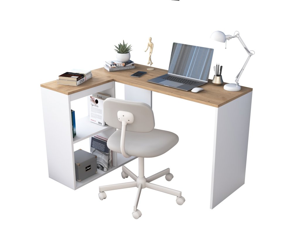 HELLEN poskytuje dostatok priestoru pre efektívnu prácu aj štúdium. Vďaka rohovému tvaru šetrí miesto v miestnosti a zároveň ponúka praktické úložné riešenie vďaka 2 policam pre knihy, dokumenty alebo školské potreby. Robustná konštrukcia s hrúbkou 18 mm zaisťuje dlhú životnosť a stabilitu.