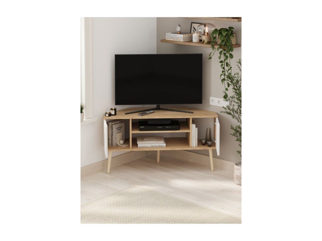 Rohový TV stolík Cyprus je ideálnou voľbou pre efektívne využitie priestoru v obývačke. Vďaka svojmu premyslenému rohovému dizajnu šetrí miesto a zároveň ponúka dostatok úložného priestoru pre všetku vašu elektroniku a príslušenstvo.
