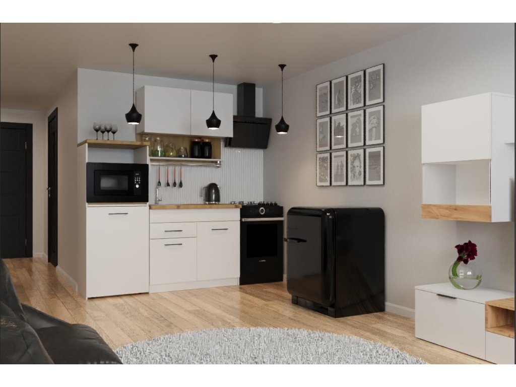 Kuchynská linka FEEL 160 kombinuje moderný dizajn s praktickým usporiadaním. Jej závesná skrinka s odkvapkávačom umožňuje efektívne sušenie riadu, zatiaľ čo skrinka s drezom poskytuje všetko potrebné na umývanie. Multifunkčná skrinka ponúka priestor na mikrovlnku alebo rúru, čo pridáva ďalšiu úroveň praktickosti a pohodlia. Pre väčšie pohodlie a štýl je súčasťou LED podsvietenia.