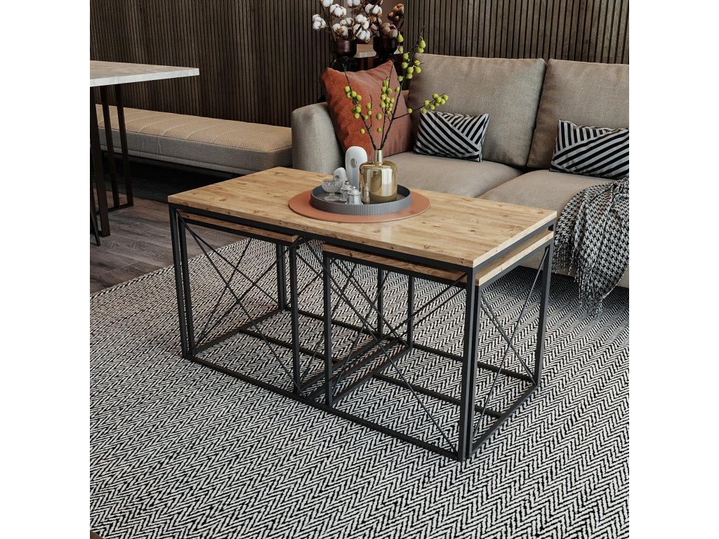 Sada konferenčných stolíkov VELMA, borovica Atlantic / čierna