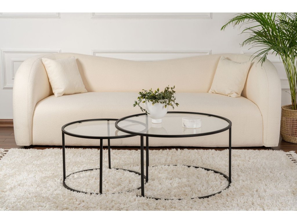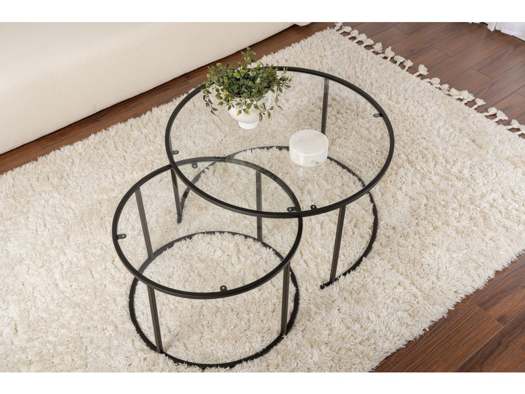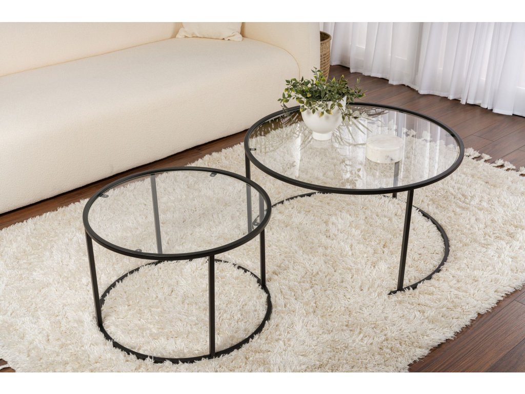 Dodajte svojmu domovu nádych luxusu s touto nádhernou sadou konferenčných stolíkov. Priehľadná sklenená doska vytvára pocit otvorenosti a svetla, zatiaľ čo čierny kovový rám dodáva nádych moderného štýlu. Či už si vychutnávate rannú kávu alebo varíte hostí, táto sada vás určite ohromí.
